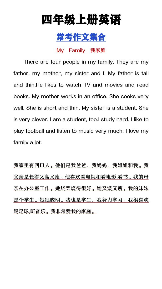 首页 > 全部 > 英语 > 【2025秋新版】四年级上册英语常考作文合集