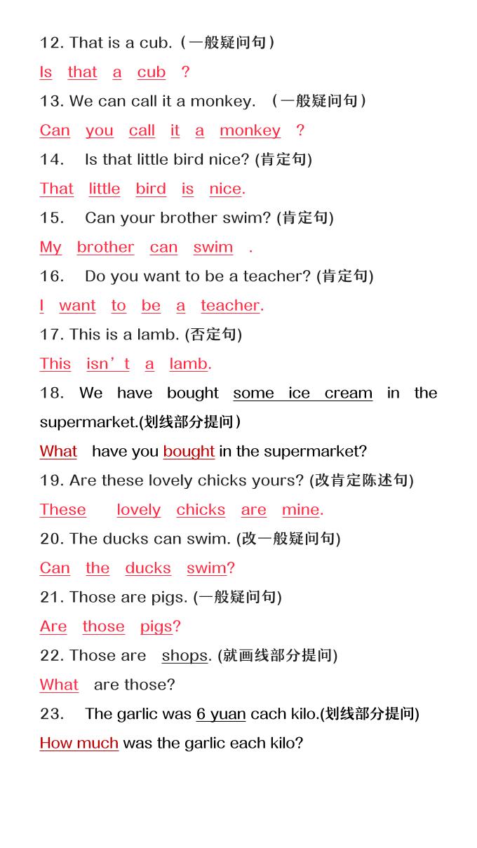 首页 > 全部 > 英语 > 【2025秋新版】六年级上册英语必考句型转换