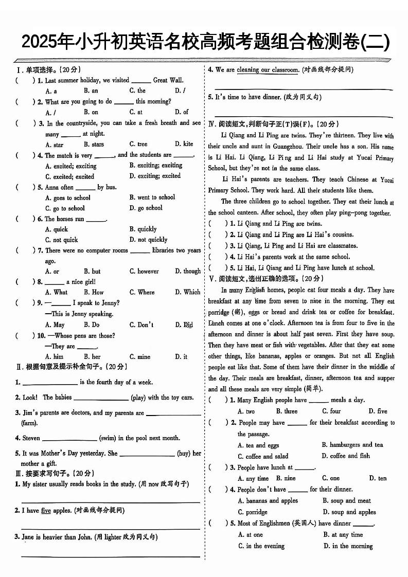 首页 > 全部 > 英语 > 小升初英语【名校高频考题组合检测卷1-10】